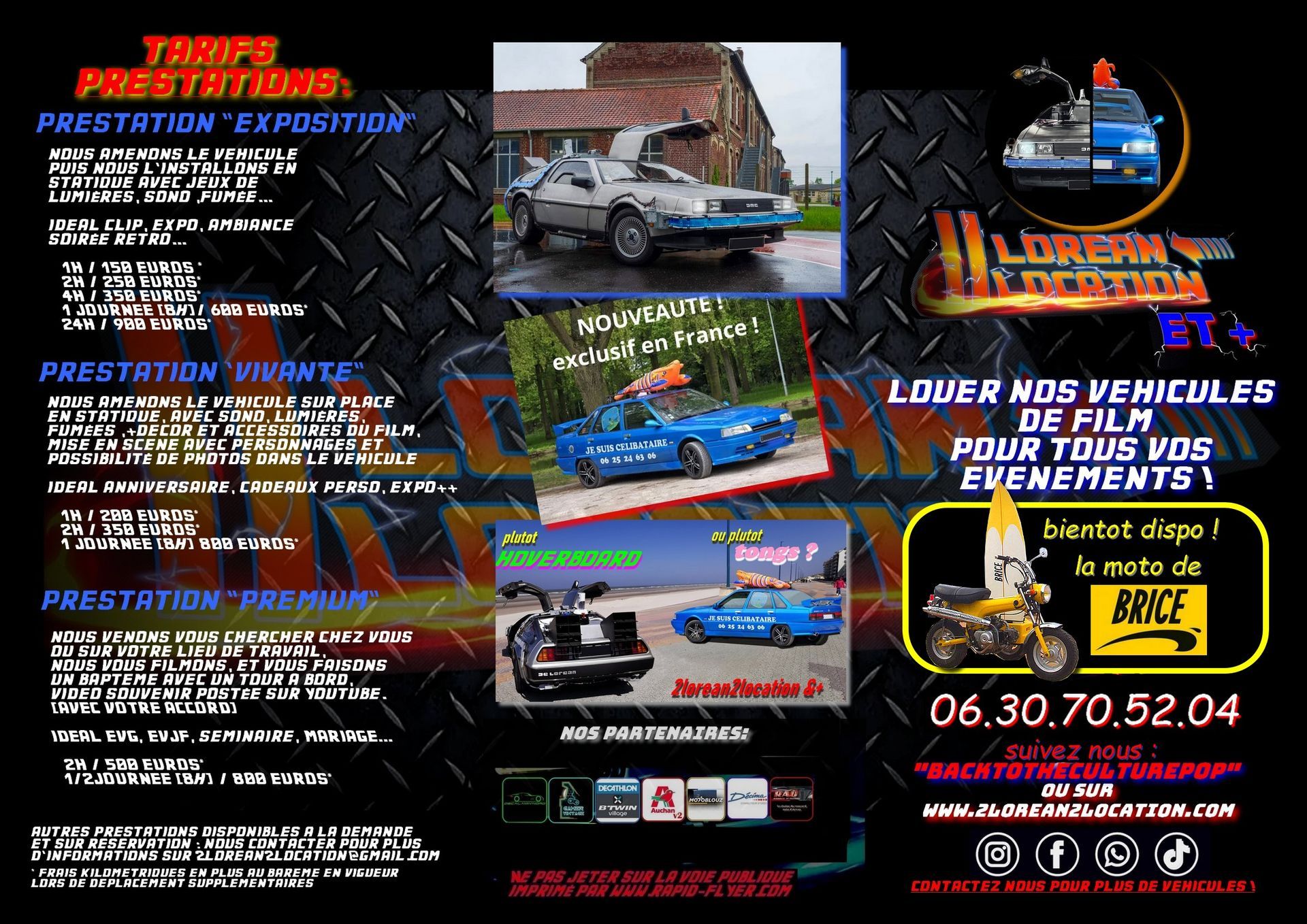Nous garantissons une prestation de qualité, nos véhicules seront à l'honneur lors de vos événements et nous saurons vous faire revivre les scènes cultes de votre film préféré ( animateur, jeux, objets cultes, déguisement, jeux de lumière, son et fumée...et mêmes des surprises!)